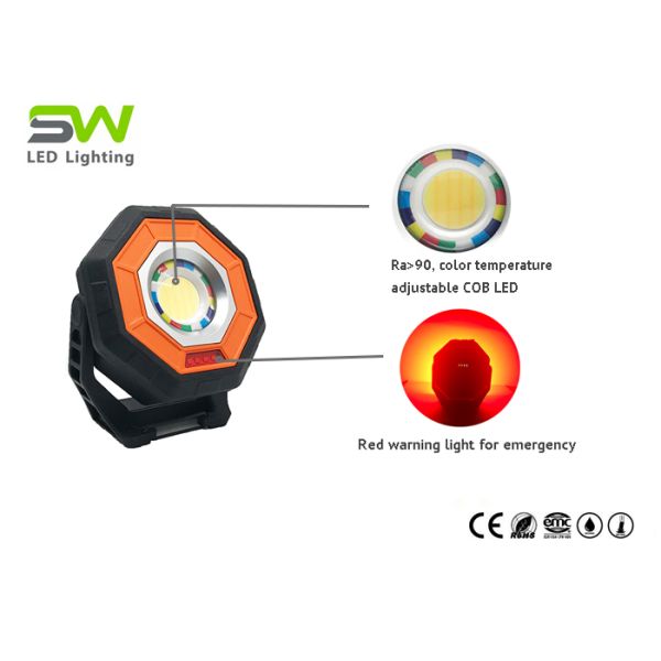 2. Main light COB LED and Red warning light design for general light use and emergency use.