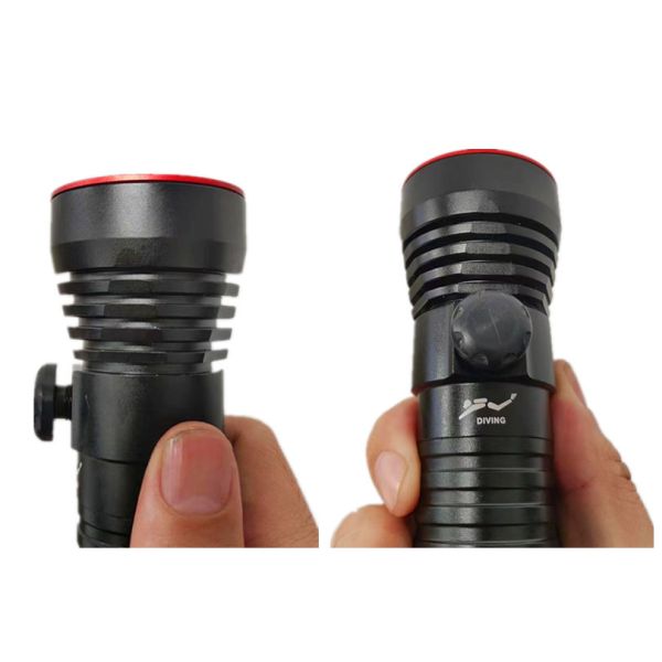 When the diving flashlight is under deep water, the regular pressing button will be not available, so we have used the rotating power button.